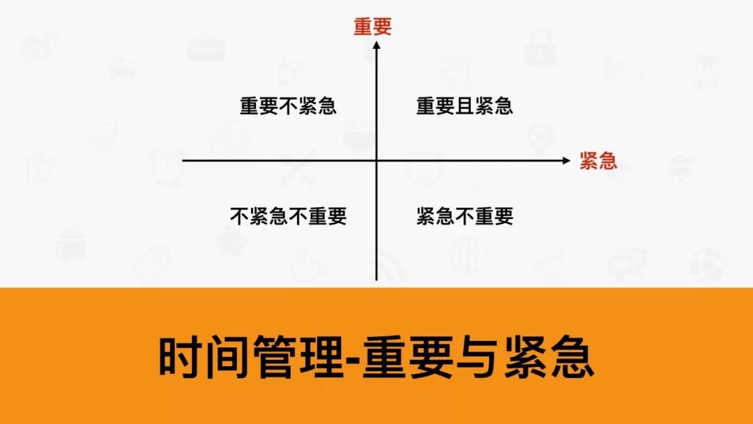 優先順序=重要性*緊迫性在進行時間安排時,應權衡各種事情的優先順序,要學會“彈鋼琴”。